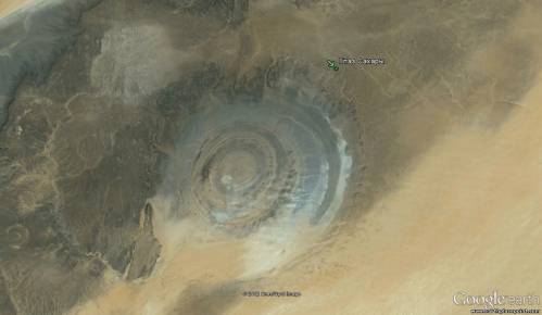 Структура Ришат (Гуэль-Эр-Ришат) — геологическое образование, расположенное в мавританской части пустыни Сахара рядом с поселением Уадан. Довольно долгое время структура Ришат служила ориентиром для космонавтов на орбите, так как представляла хорошо видимый объект на обширном пространстве ничем не примечательной пустыни.В настоящее время учёные полагают[5], что осадочные породы структуры Ришат являются результатом действия эрозии на поднятии участка земной коры.